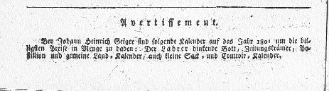 Glücklicherweise hat der Herausgeber des Lahrer Hinkenden Boten nicht nur diesen Landkalender, sondern auch noch sein Wochenblatt herausgebracht, das - aller Zensur zum Trotz - einen guten Einblick in das kleinstädtische Leben gewährt, wenn man das schmale Blättlein nur recht zu lesen weiß.