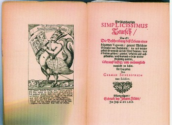 1668 erschien sein Hauptwerk, . Der Abentheuerliche Simplicissimus Teutsch. , in dem er wohl auch viele eigene Erlebnisse verarbeitet hatte. Mit ihm hinterläßt uns Grimmelshausen das anschaulichste Bild eines Zeitzeugen, das wir vom Dreißigjährigen Krieg besitzen. Von 1670 bis 1674 erschienen eine ganze Anzahl