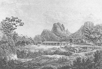 Der mittlere Teil des brasilianischen Landguts lag an einer mit großen Quadersteinen gepflasterten Landstraße, die nach Matto Grosso in den nordwestlichen Teil des Landes führte. Das Gebirge war mit Urwald bedeckt; das Wohnhaus, eine schöne Villa, hieß Boa Vista und lag auf einem kleinen Hügel östlich der Straße. Im Norden und Osten befanden sich Kaffeeplantagen, - Georg Heinrich von Langsdorff gehörte neben seinem Freund I. F. Lecesne zu den Pionieren des Kaffeeanbaus in Brasilien -, die an den Urwald grenzten. 25.000 Pflanzen umfaßte seine Plantage. Eine halbe Stunde entfernt lag eine Mühle, in der Tapiokawurzeln zu Mehl zermahlen wurden. Die Wurzeln stellten neben schwarzen Bohnen das Hauptnahrungsmittel der Eingeborenen dar.